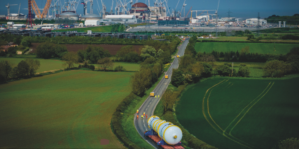 Un générateur de vapeur est amené sur le chantier de Hinkley Point C dans le cadre d’un transport exceptionnel.