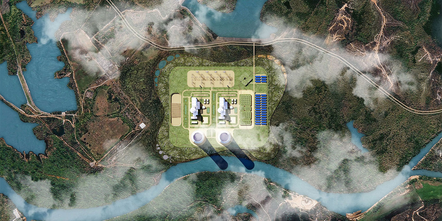 Illustration d'une centrale nucléaire depuis en-haut