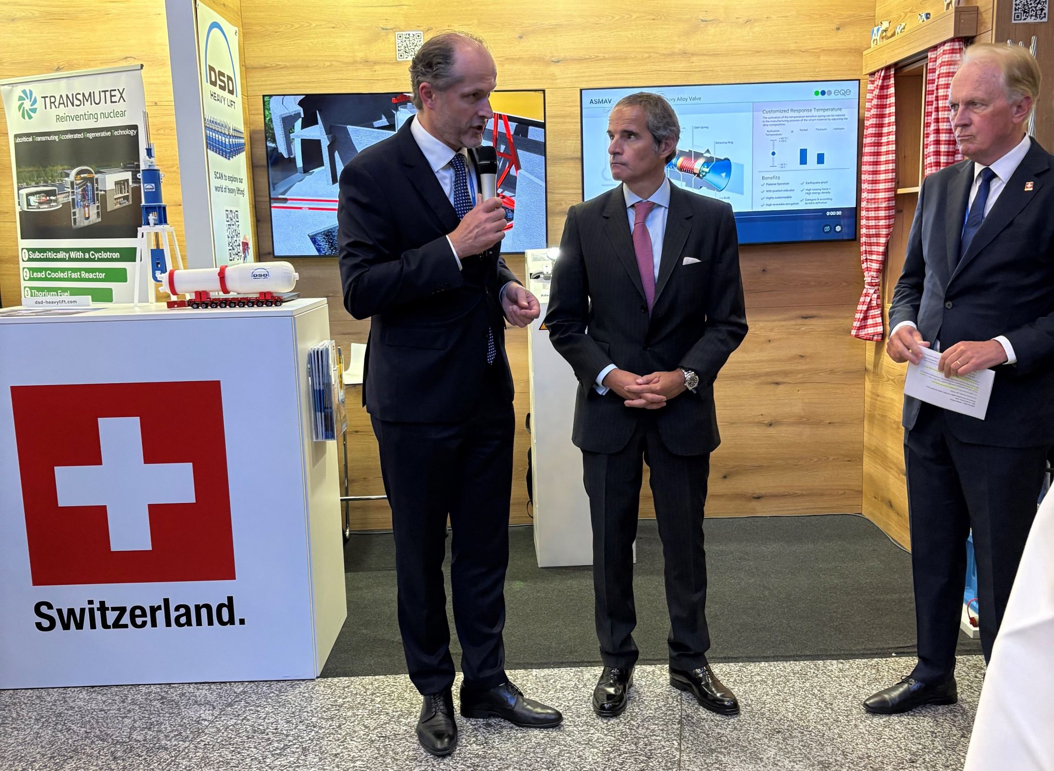 Pour la première fois depuis longtemps, la Suisse a occupé un stand propre à l’exposition, et a pu présenter à cette occasion ses projets, ses technologies ainsi que ses initiatives. Ce fut également l’occasion de discuter directement avec des délégués. M. Grossi est venu en personne s’informer sur les offres de la branche nucléaire suisse. Le Swiss Evening organisé à l’ambassade de Vienne a accueilli des membres des délégations ainsi que des représentantes et représentants de la politique, de la recherche et de l’industrie, une occasion d’entretenir les contacts et de renforcer les réseaux.